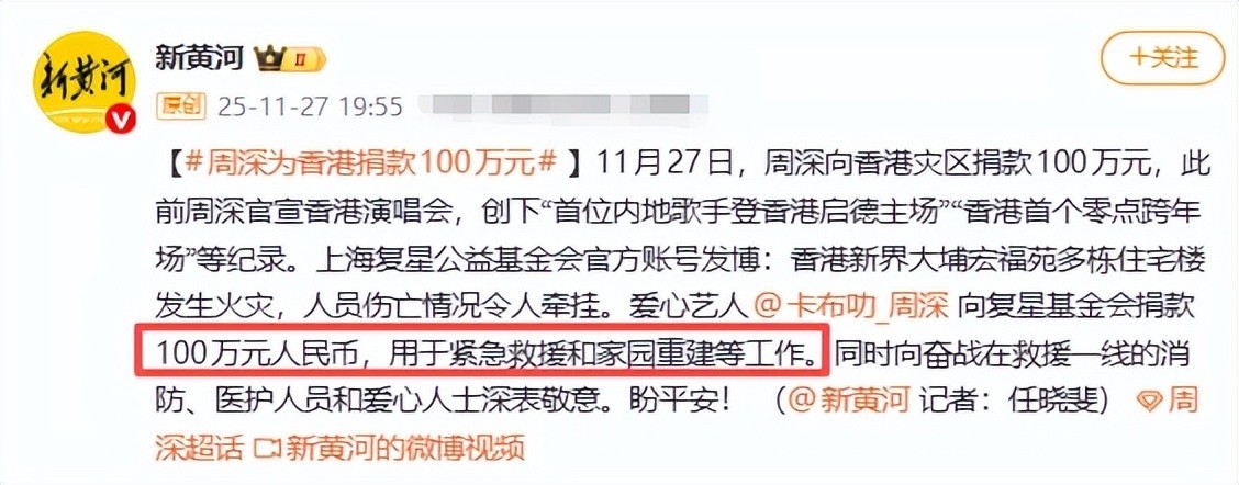 部分参考资料:新黄河官方微博|周深为香港捐万元